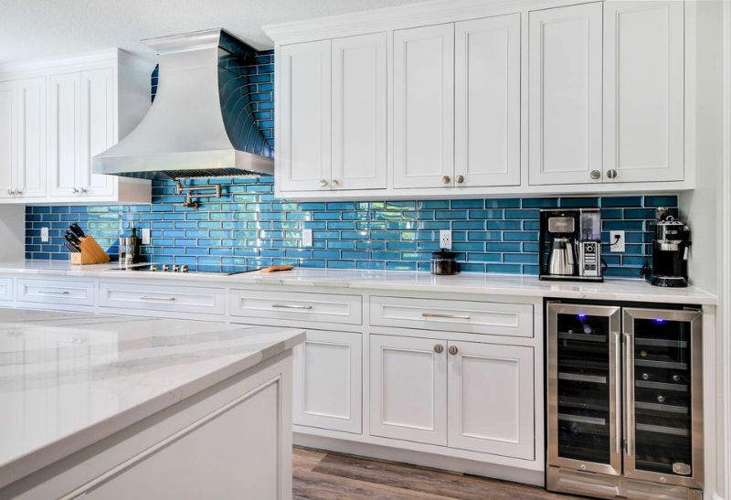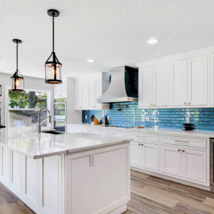 Elevate your floor design with our choices of hardwood, tile, laminate, or luxury vinyl plank flooring. Our Orlando kitchen remodeling services also include stunning backsplash options that bring a pop of color to your kitchen, such as subway tile, mosaic, or natural stone