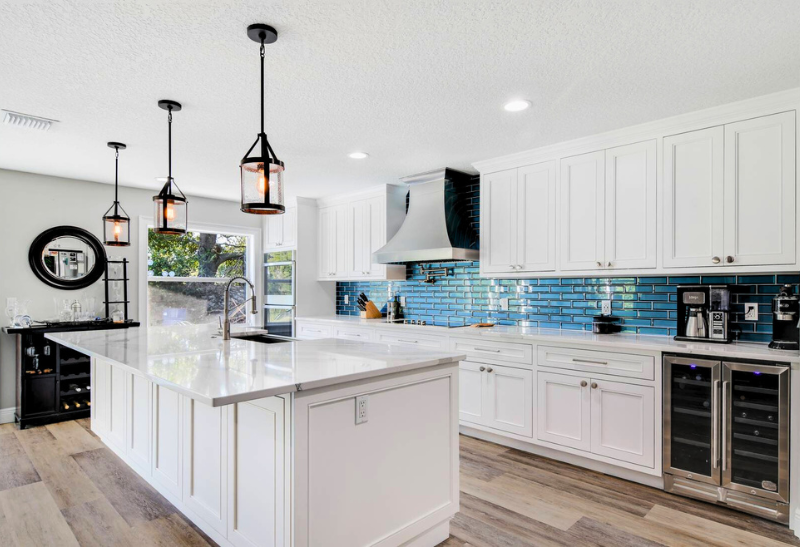 Elevate your floor design with our choices of hardwood, tile, laminate, or luxury vinyl plank flooring. Our Orlando kitchen remodeling services also include stunning backsplash options that bring a pop of color to your kitchen, such as subway tile, mosaic, or natural stone